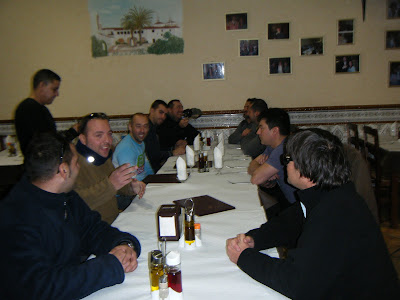 SPINNINGMANIA del que el era parte y enseguida se sumaron participantes Garrofero, Kenpescador y el menda aquí presente solo pegamos el puntapié inicial lo demás salio solito, al final nos juntamos una veintena de spineros en una mañana exageradamente fría, 1ºC bajo cero marcaba el termómetro al arribar a Amposta que fue el lugar de encuentro, aquí los que habían arribado sobre las 7hs y esperando a un coche que erro el camino pero que están al llegar, durante la noche anterior Txema me había avisado que no podrá asistir ya que se encuentra indispuesto y afiebrado, lastima algunos tenían ganas de su charla sobre pesca con mosca.